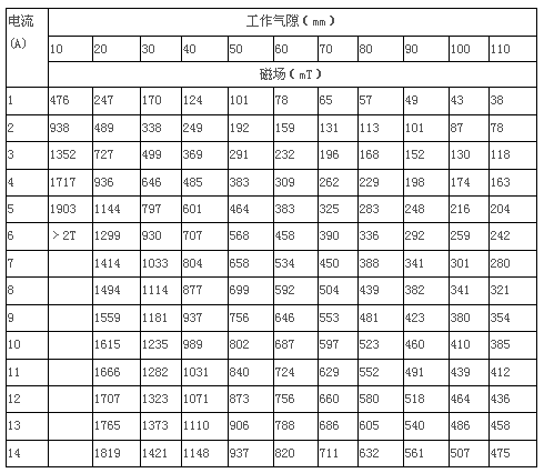 3.4 最大磁場:H≥2T, 工作氣隙10mm時(shí),